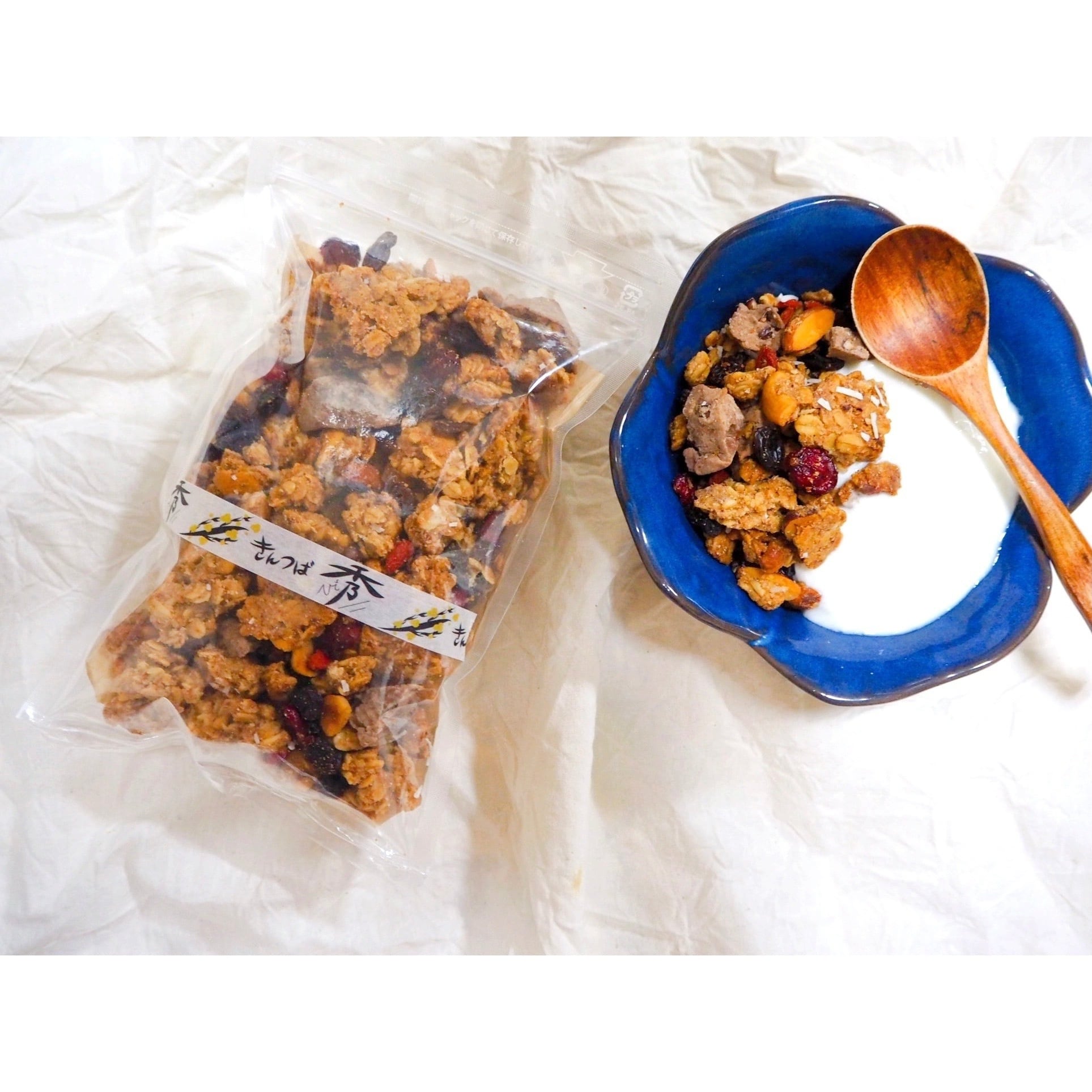 きんつばのみみを混ぜ込んで、他には無いザクザク食感の秀オリジナルのグラノーラに仕上げました。