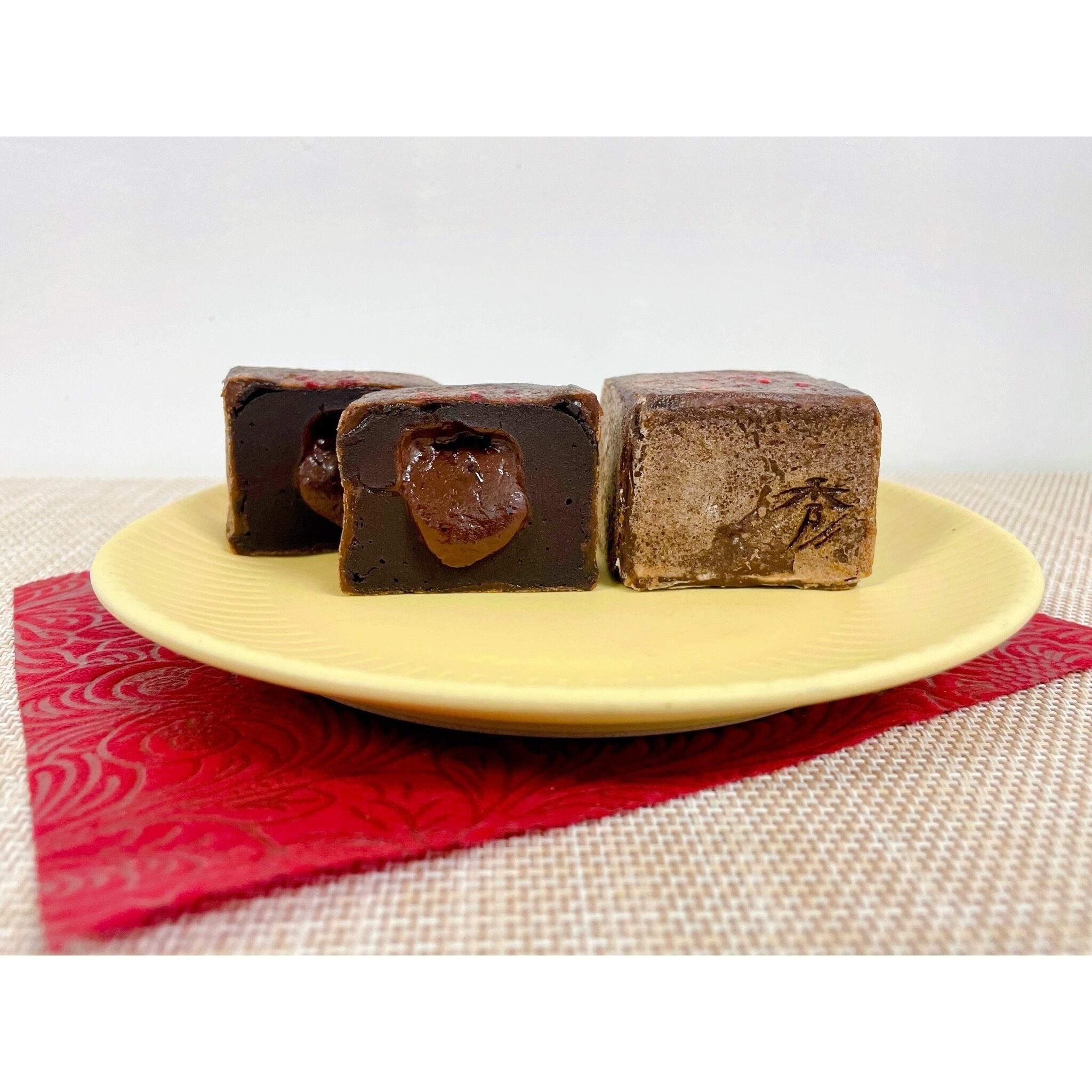 オリジナルのショコラ餡のきんつばにチョコレートガナッシュを忍ばせたとろっと濃厚なきんつば。