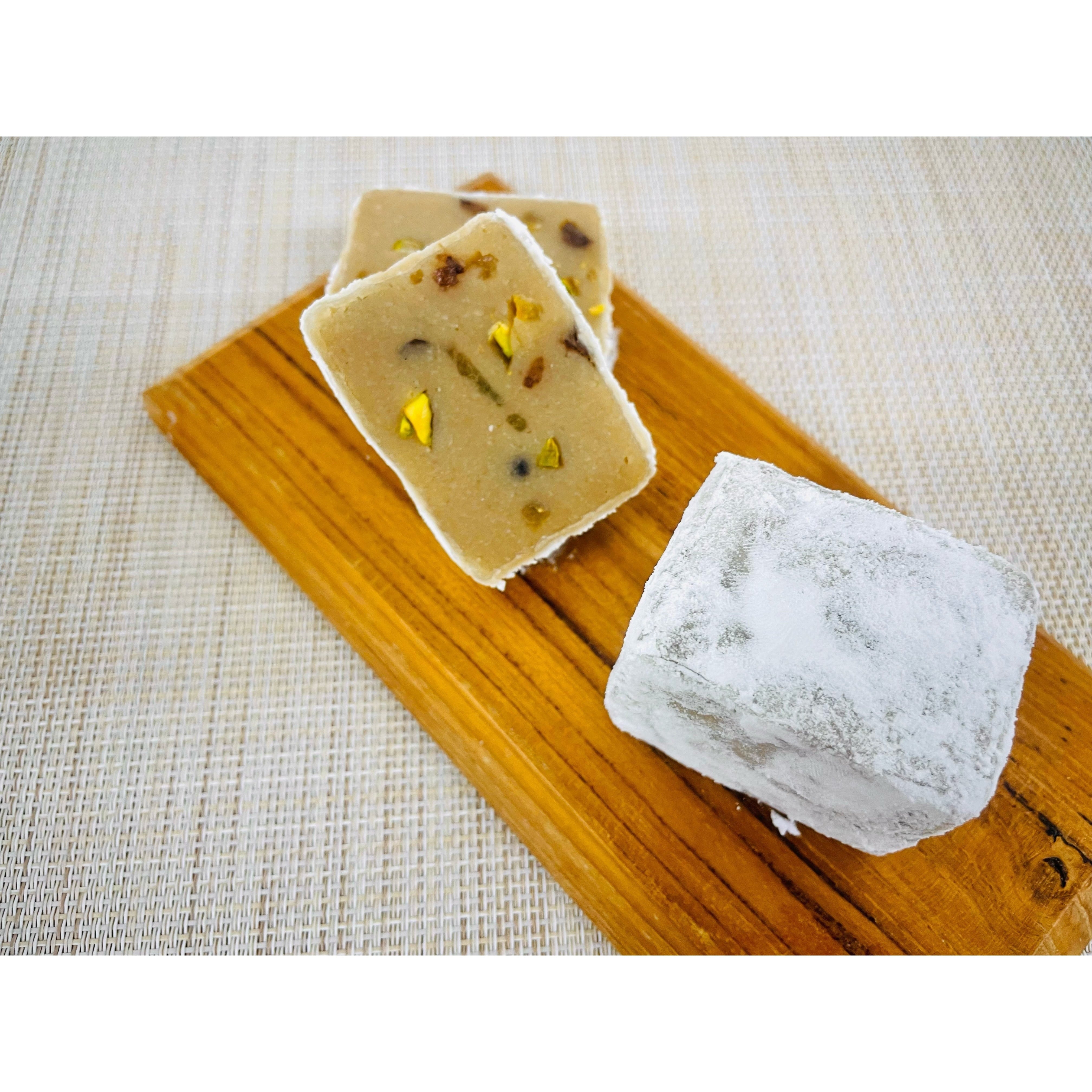〈原材料〉白いんげん(国産)、砂糖、アーモンド粉、白玉粉(もち米)、米粉、バター、クランベリー、レーズン、ピスタチオ、伊予柑ピール、みりん、米飴(玄米、麦芽)、粉糖、洋酒、タピオカ粉、寒天、クローブ、カルダモン、塩、米油/トレハロース (一部に乳成分・アーモンド・オレンジを含む)